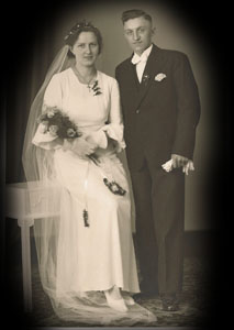 Oben finden Sie einige wenige Familienbilder der Familie Schulte gen. Steggert aus den frühen Jahren. Diese Bilder vermitteln die Stimmung des bäuerlichen Umfeldes und der Großfamilie, in der Elisabeth Marx geboren Schulte gen. Steggert aufgewachsen ist. Besonders zu den Hochzeiten versammelte sich die Familie zu einem Familienfoto.